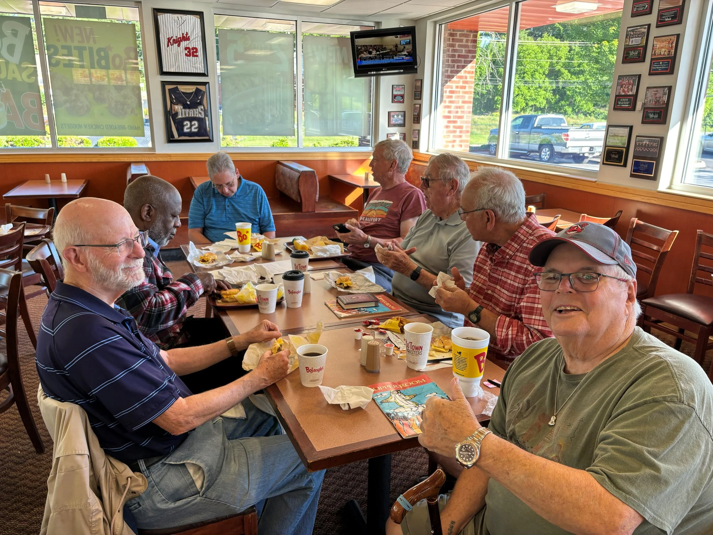 The members have devotions, discuss various Christian topics, and share encouragement and fellowship. Dinner is Dutch treat (in the range of $10-20 depending on what you order.)